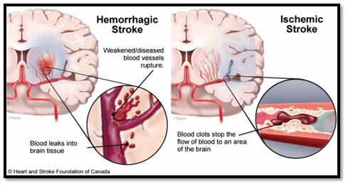 - Due to leakage of blood from the blood vessels (let us call this ‘leakage type’) medically called ‘haemorrhagic type’, also called ‘brain haemorrhage’.