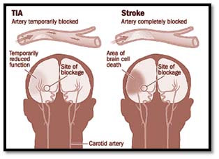 A “mini-stroke”, also called a transient ischemic attack or (TIA), happens when, for a short time, less blood than normal gets to the brain. A “mini-stroke” lasts from a few minutes up to a day.