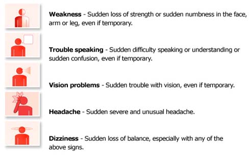 The five most common signs & symptoms of stroke are: